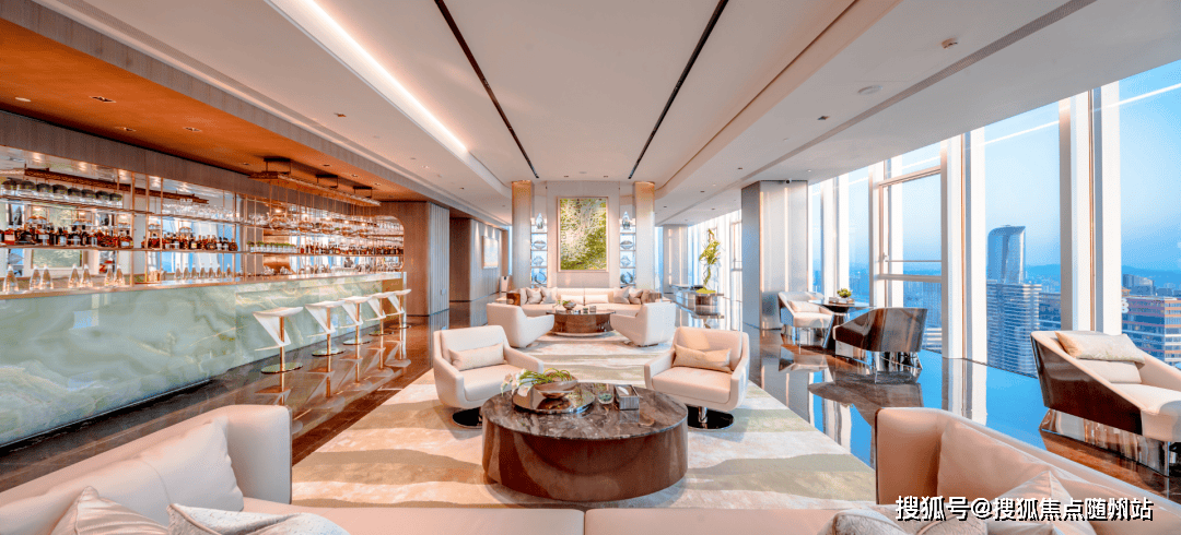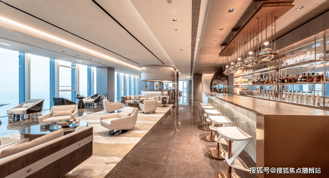 IOC在51层耗资1个亿,损失了可售面积去打造云端会所,包含会客厅、行政酒廊、茶室、雪茄吧、私宴厅、沙龙6大功能,5楼会所还有泳池、健身、SPA、影院,甚至还做了屋顶花园.