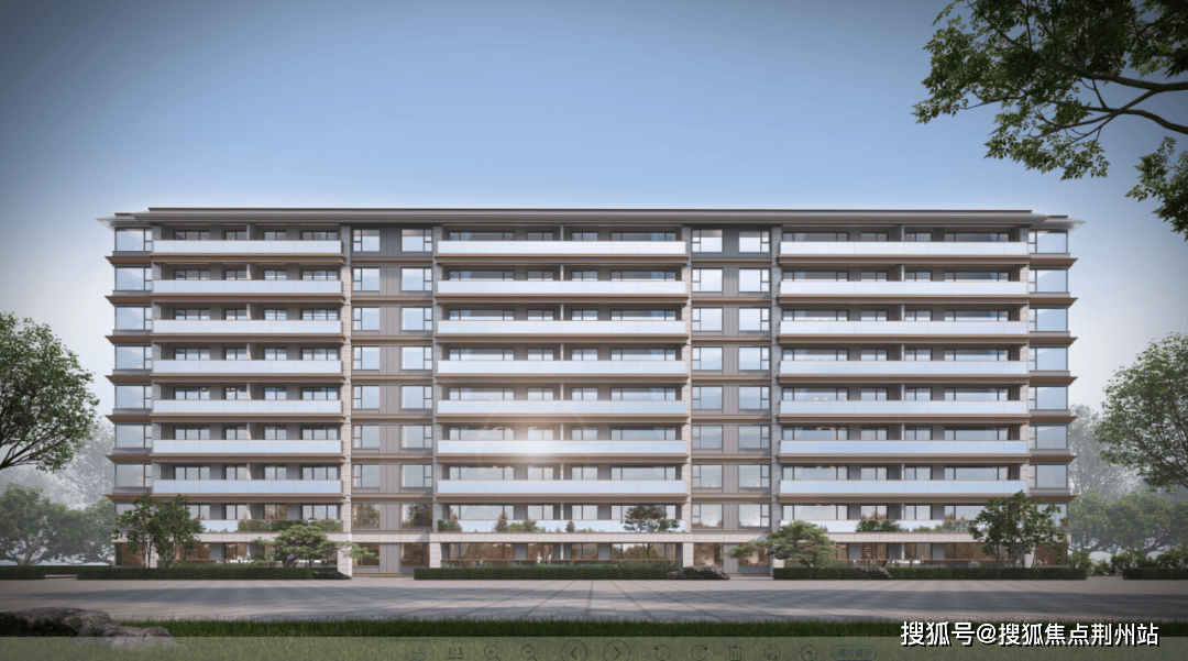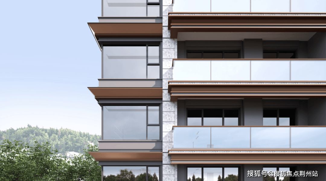 南向开敞阳台首开板块先例,玻璃与铝板两种材质的应用,将通透灵动的光幕线条与金属光泽完美融合。叠拼的阳台增加了传统建筑中勾栏构件与竖向立杆,超大窗墙比叠加浓厚的东方韵味,整个建筑既隽永又耐人寻味。