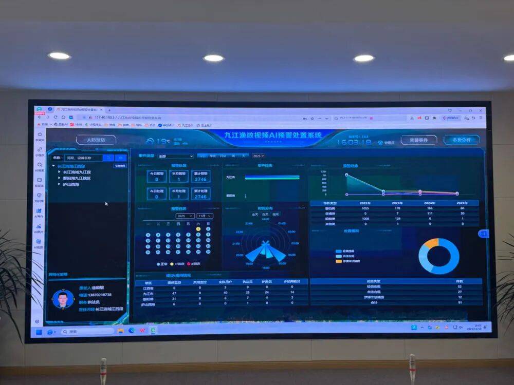 “过去巡查主要依靠人力,不仅效率低,夜间更是难以及时发现问题。”鄱阳湖锣鼓山联谊联防执法点中队长王陶忠表示,“如今依托这一平台,我们基本实现了全天候、无盲区的智慧监管。”