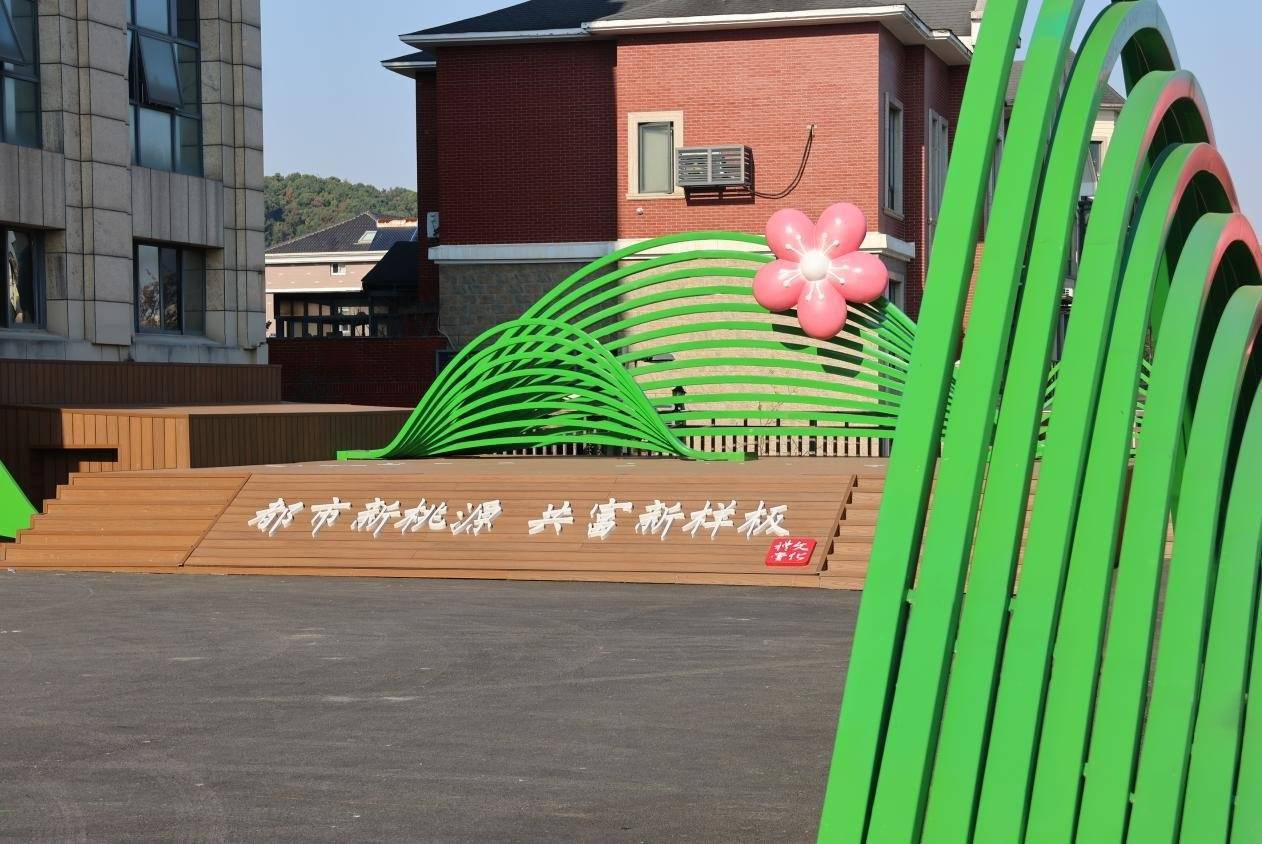“以前这里只能停几辆车,没想到改造后这么宽敞,真适合做舞台!”村民方大伯站在舞台前说,这座舞台设计独具匠心:波浪形围栏的灵感来源于皋亭山起伏的山脉线条,栏板上点缀着朵朵粉色桃花,既融入了地方文化元素,又透着几分时尚的“潮”味,在乡村环境中显得格外亮眼。