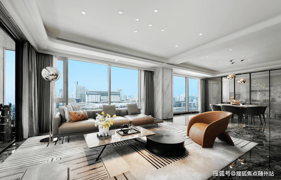 项目主打建面约300-600平方米商业大平层,仅设298户,打造纯粹圈层住区。一楼架空层高达4.79米,其他楼层层高3.4米,营造出开阔大气的空间感。
