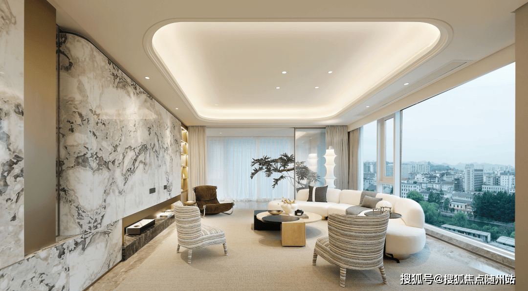 最攥人眼球的是那一抹熊猫白石材背景墙,恰似云雾氤氲的江南水墨画,线条飘逸,余韵悠长。另一款为新古典风格的“鎏金”,位于在售9号楼12层,由郑仕樑担纲设计。从武林壹号同款十字圆厅,到近60㎡的270°巨幕转角厅,都兼具舒适度和仪式感。