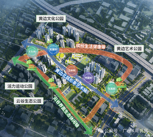 项目紧邻黄边艺术公园,未来将与黄边文化公园、活力运动公园、云谷生态公园四大主题公园相串联,形成自然与人文共生的活力空间。