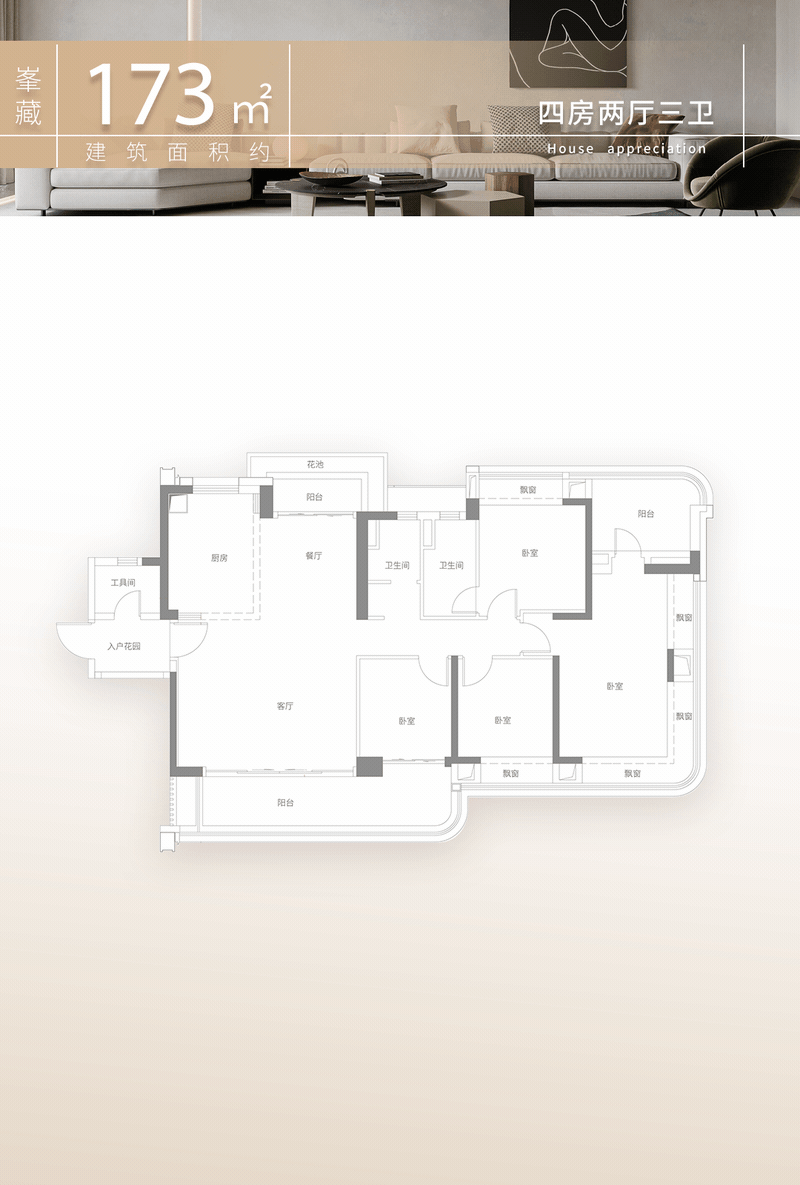 部分户型为超100%使用率新规、约3.1-3.3米层高、三梯四户乃至私梯入户的配置。