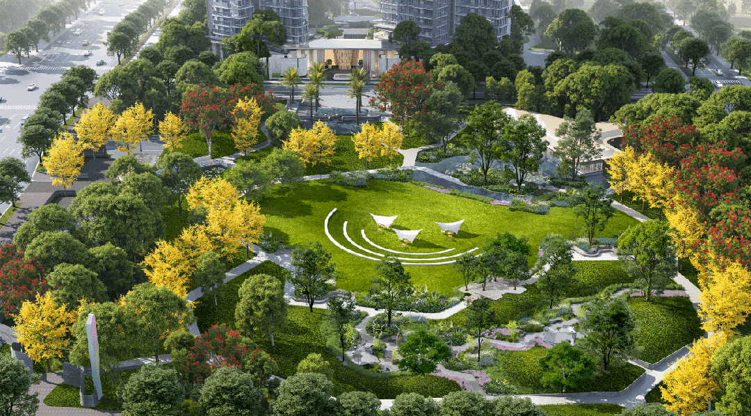 园林景观,单看效果图就能感受到辨识度,层次和细节丰富,色彩搭配非常出挑;