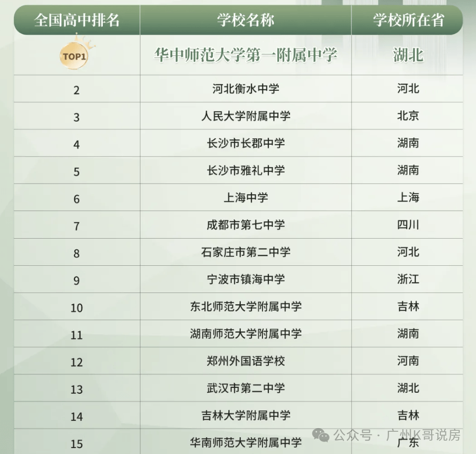 “广东第一看华师附中,全国第一看华中师大一附中。”华中师大一附中以遥遥领先的教学实力、优秀的升学率,连续6年稳居全国百强中学TOP1,被誉为“清北摇篮”。华师附中,仅排名第15位。