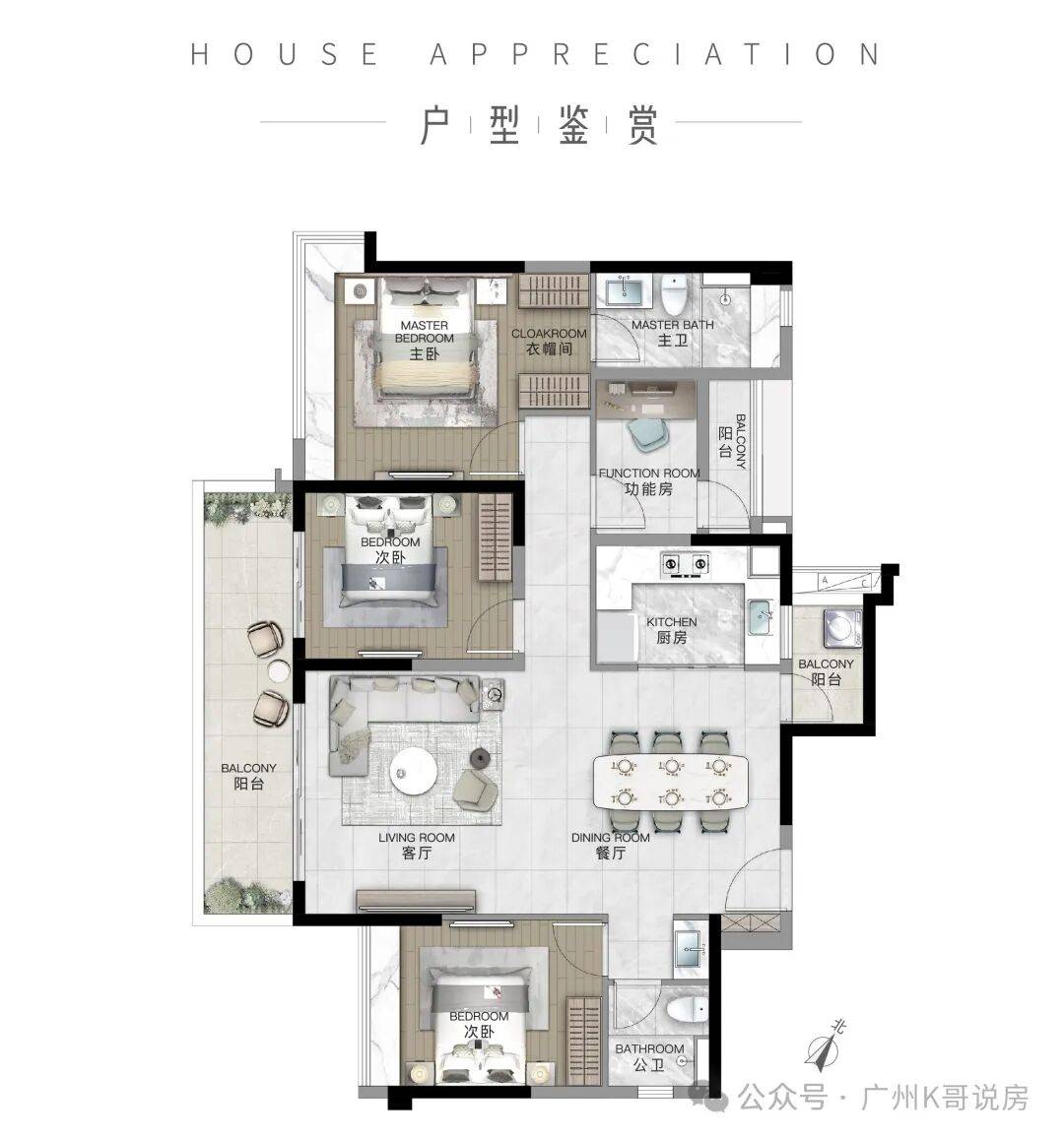 双面景观阳台 + 满飘窗,约6.8m 面宽超大阳台,景观资源最大化利用。
