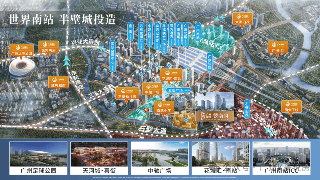 深耕南站:广州城投深耕南站核心区,从商业布局(南站花城汇)、地标锻造(广州足球公园)、人才引进(城隽玥府/和府等人才房)及公建配套(南大干线、南站小学、石壁中心幼儿园等)四大维度着手,助力南站成为继珠江新城后又一湾区新轴心。