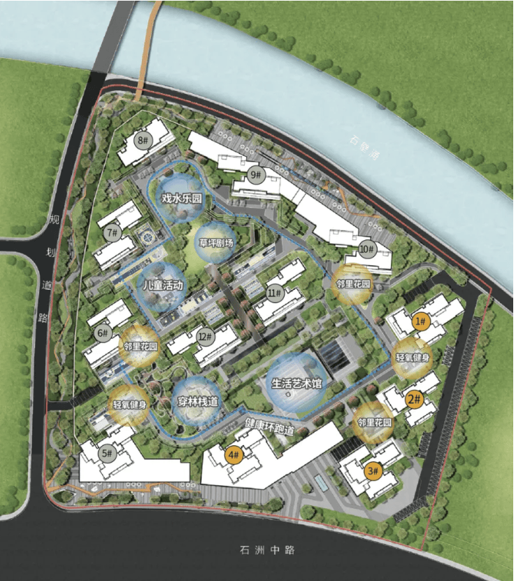以“一廊一环五景多花园”规划布局,精心打造了健身盒子、健康环跑道、草坪剧场、穿林栈道等各类娱乐休闲康养设施,尽情享受自然之乐。