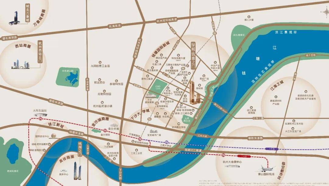 钱塘国际新城位于杭州三环内,是杭州“拥江发展”和“城市东拓”两大发展战略交汇处的又一发展热土,与毗邻的下沙大学城及隔江相望的大江东,形成“一江两岸三城”齐头并进、融合发展的新增长极的黄金节点。(数据来源于:钱塘新区官网,截止时间2024年4月)