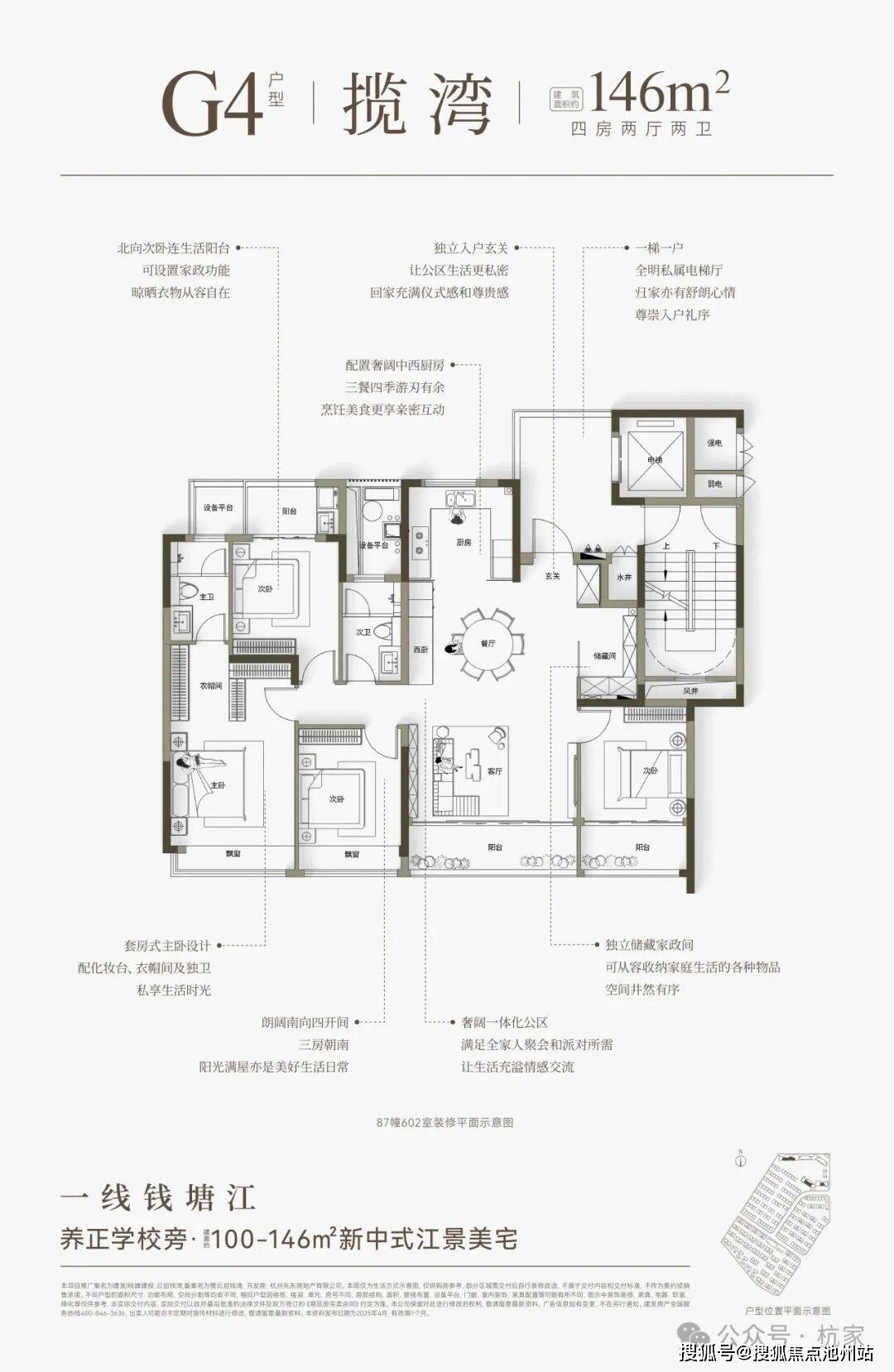 建面约146㎡四房户型,全部南向面江,大部分楼层还可看到一线江景。“类一梯一户”设计,私密性更好。带有LDKB超尺客厅,享有超尺度的瞰江视野,随手一拍,发在朋友圈都能让人投来羡慕的目光。另外还带有一个独立储藏空间,轻松收纳更多杂物。