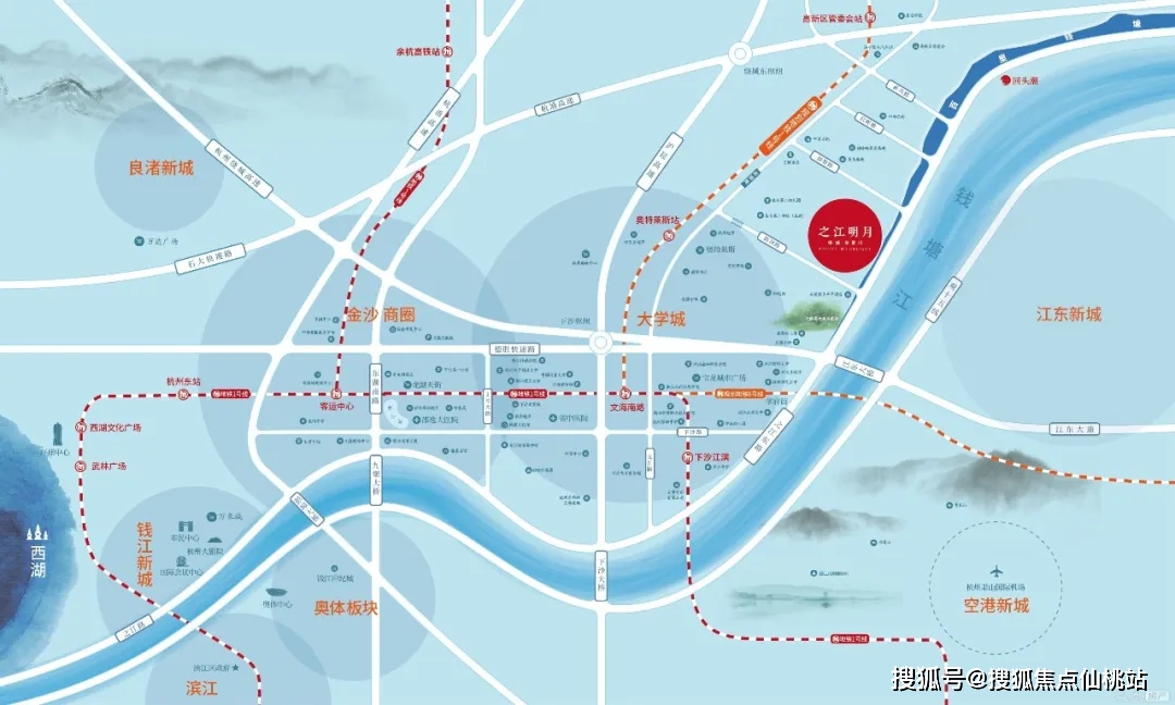 概括:之江潮项目所属之江转塘及紧邻的富阳银湖区块,杭州绕城西线转塘入口处。北面临中国美院,浙江音乐学院等艺术院校。东西南均为之的高端住宅聚集区。该板块是杭州重点开发的高级旅游区。在之江不仅有玉带环腰之势的钱塘江,更有风景如画的西湖风景区相伴,
