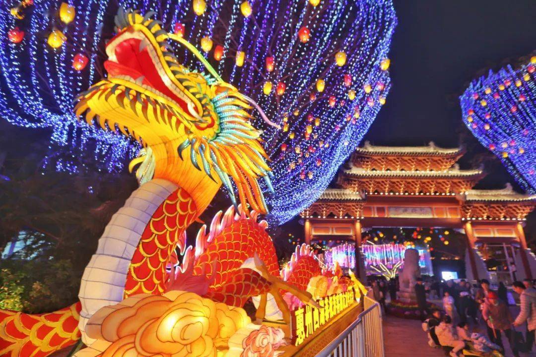 本届灯会最具“年味”的莫过于平湖门的“祥龙贺岁”灯组,正值甲辰龙年,龙是中华民族的图腾和象征,两条东方巨龙“腾云驾雾”降临西湖,带来福泽祥瑞之气,寓意各位市民游客朋友龙年大吉。为满足市民游客需求,惠州西湖东门(平湖门)入口的“祥龙贺岁”灯组将暂时保留,并于2月26日起常态化亮灯,欢迎市民前往打卡合影。