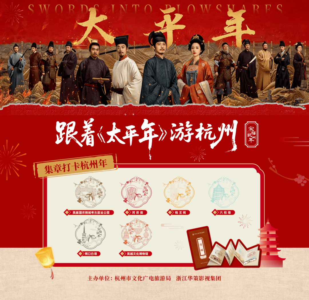 紧紧抓住重大历史题材电视剧《太平年》在央视热播契机,提前布局、市区联动、政企协同,创新推出“跟着太平年游杭州”系列主题活动,成功将“流量符号”转化为可体验、可消费的文化旅游产品,引爆春节市场。
